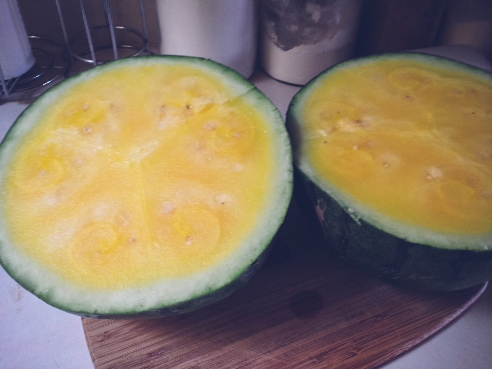 Delicious-yellow-farmstand-watermelon-eating. . .