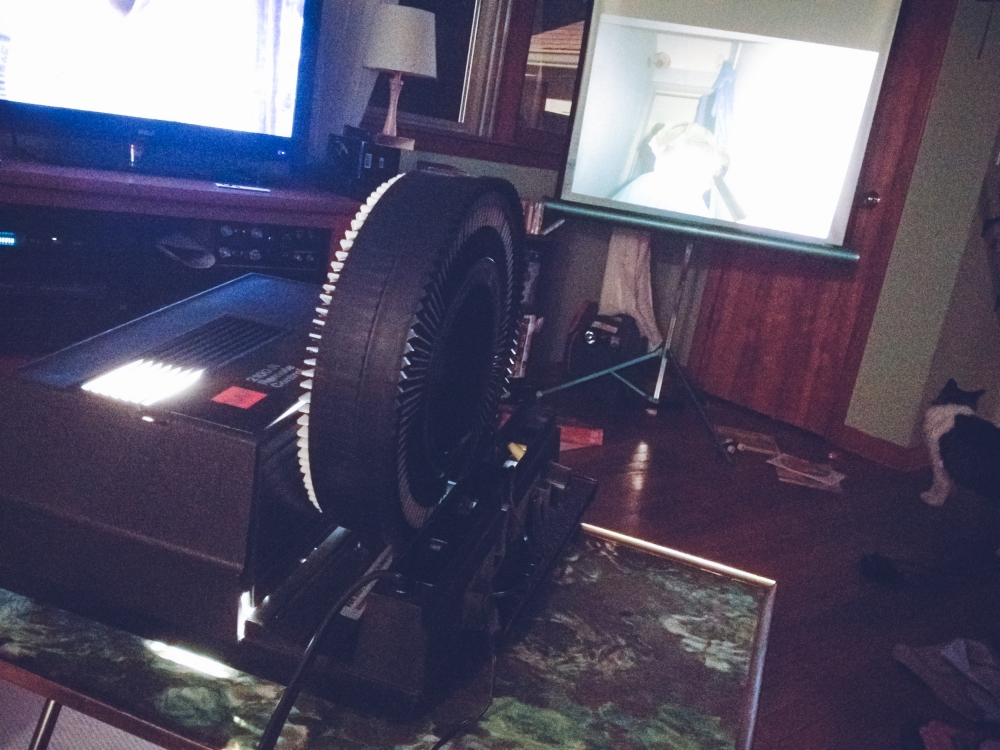Oldschool-slide-projecting (we used to do these all the time at night when I was kid). . .