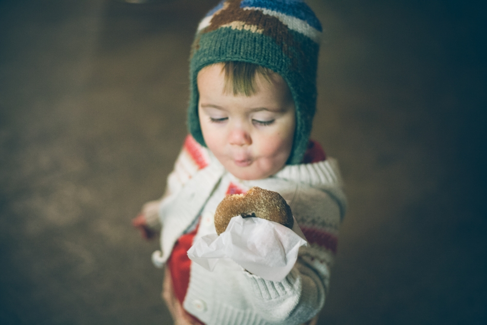 As a special treat, Indy was allowed to have a donut all to herself. . .and now, gratuitous baby-eating-donut pictures. . .