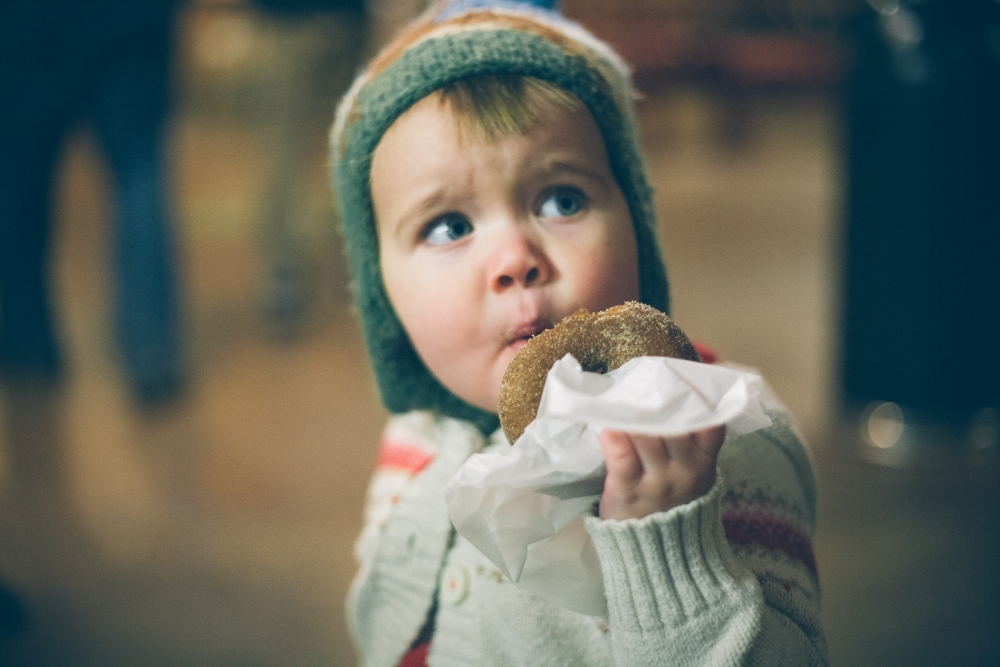 After cutting our trees and hauling them back to be wrapped up, we went inside for hot apple cider and cider donuts.