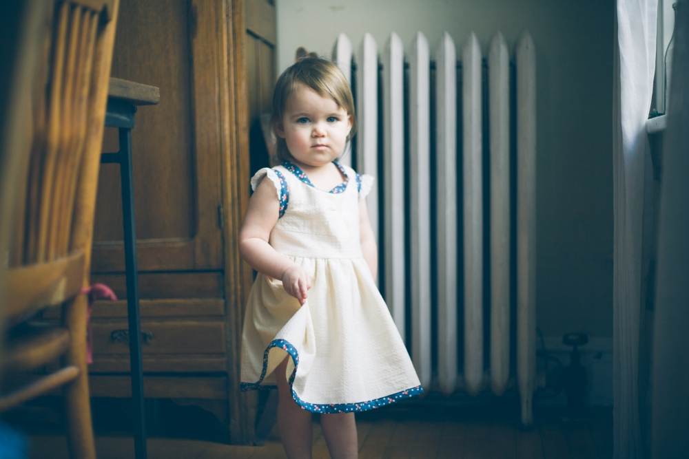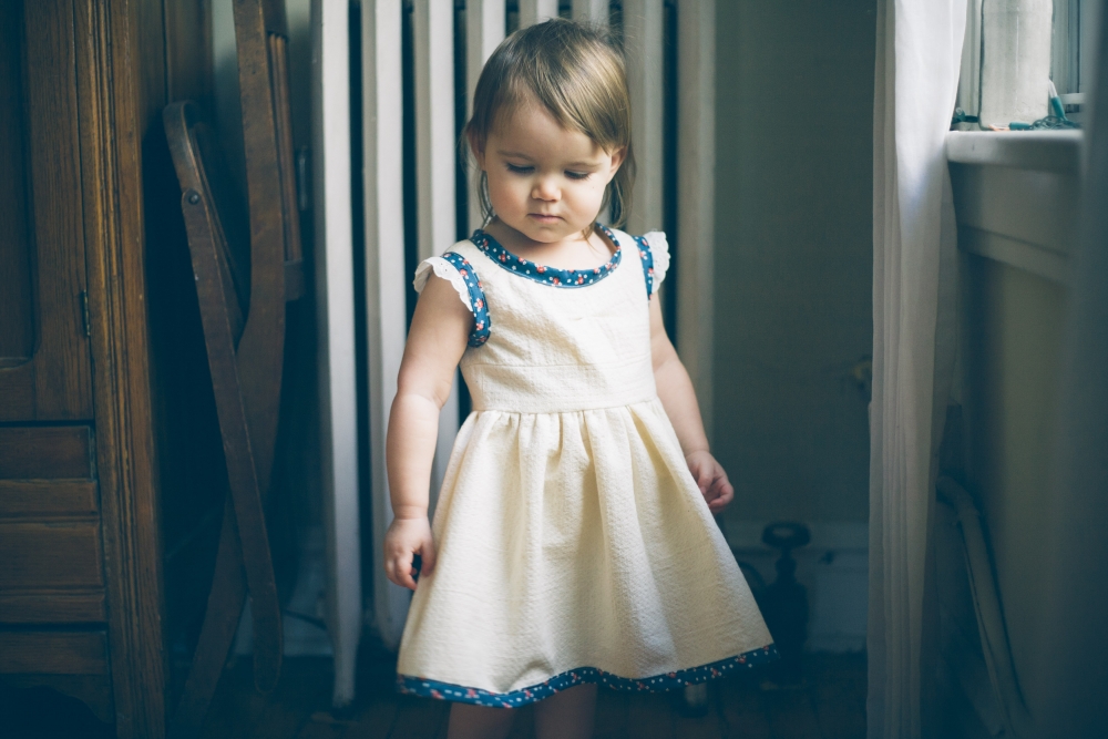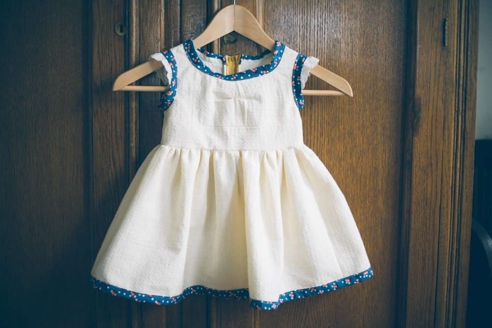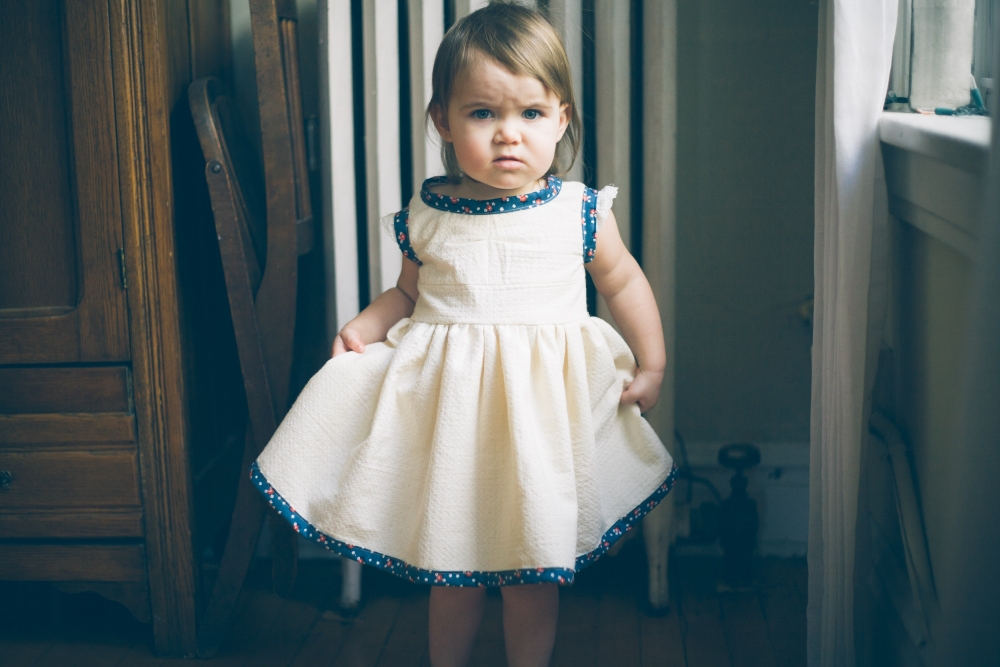 Indy didn't end up with a Christmas dress this year, even though I had dreams of deep green velvet and satiny bows, time just got away from us. So I had been keeping my eyes peeled for an Easter dress to buy for her, but everything was just a little too princessy and not enough farmy. So yesterday I just got in a mood and ended up spending the whole day sewing one instead.