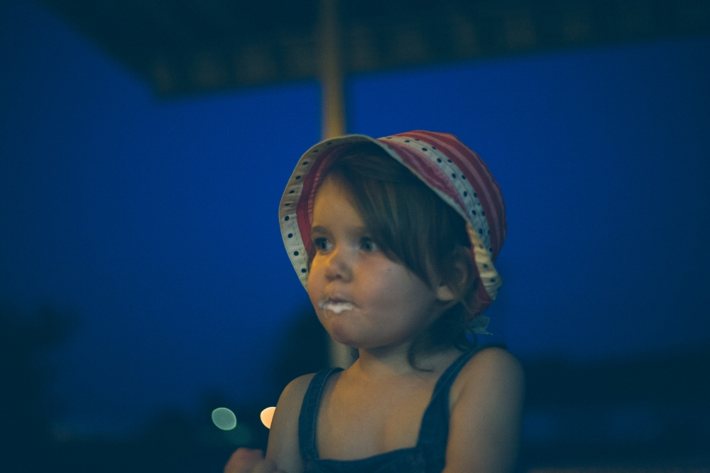 Anyways, Indy certainly doesn't mind the heat, but while she's outside getting her vitamin D a good hat to shield that cherub face isn't a bad idea. We picked it up at a local antique shop. Ain't she cute?