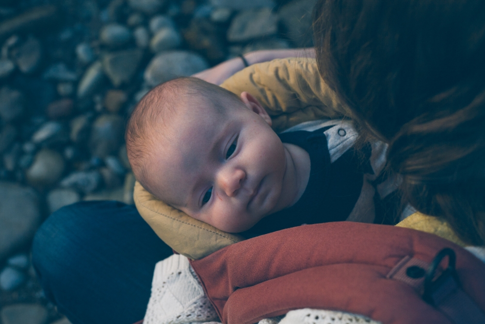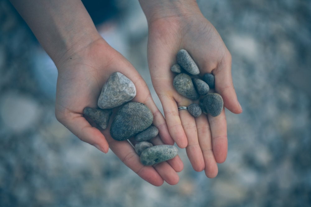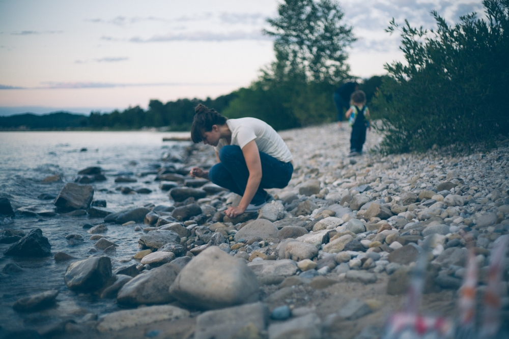 Hunting for Petoskey stones along the shore of lake Michigan at sunset - a tradition. . .