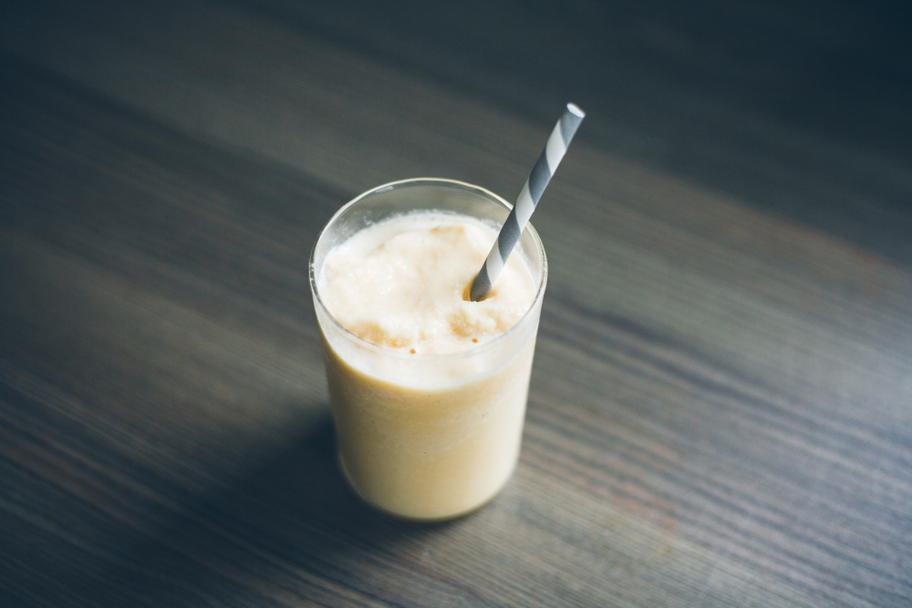 Peach smoothies: frozen homegrown peaches, raw milk, ice, raw honey. Yum.