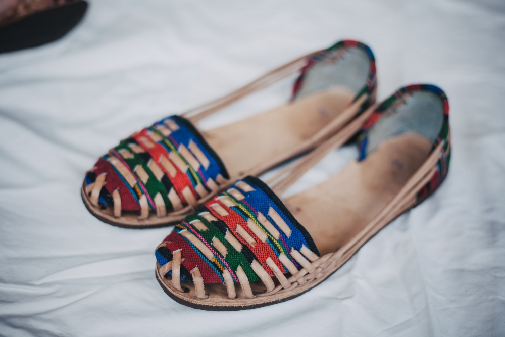 The sandals are made using these traditional textile fabrics, leather, and rubber (the soles). The sandals can be thought to be an upcycle product because the rubber used comes from recycled automobile tires.