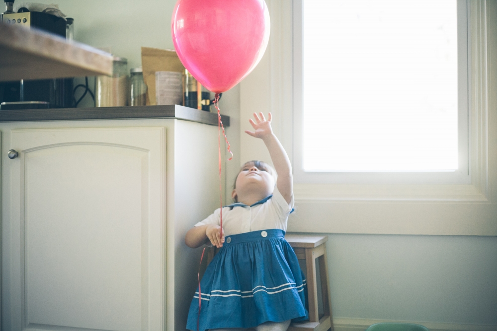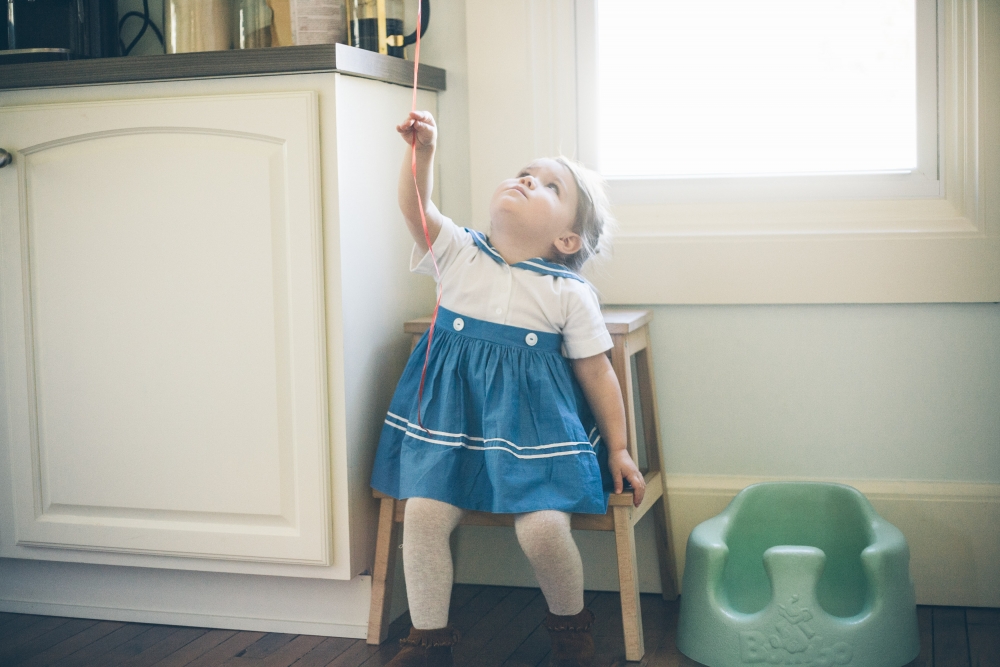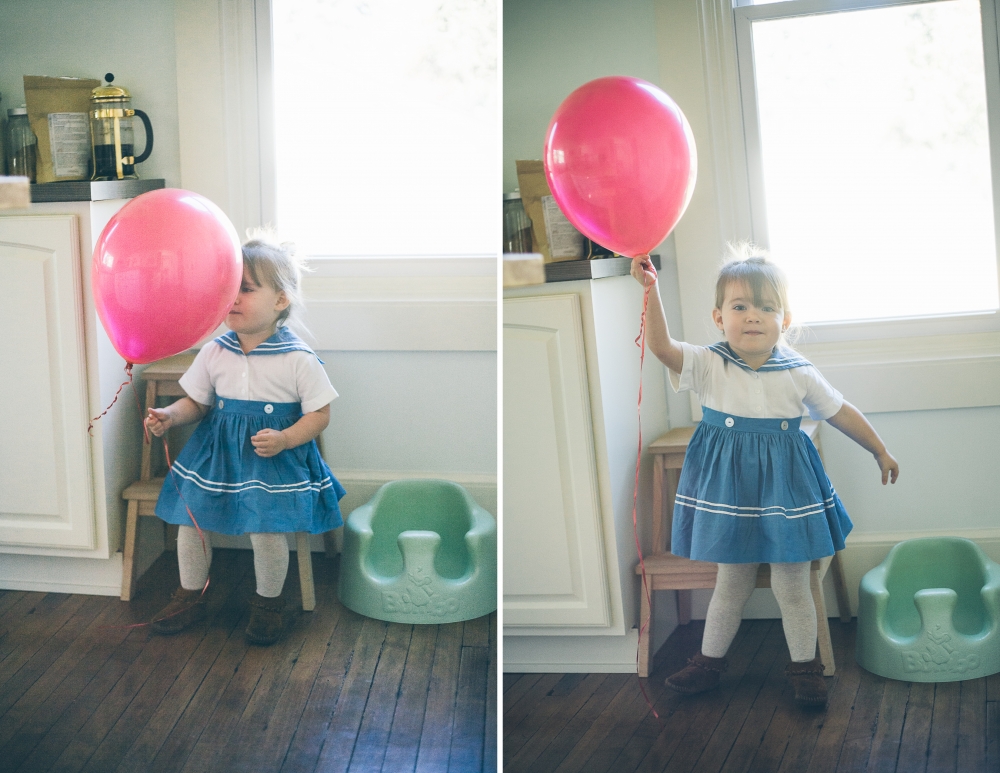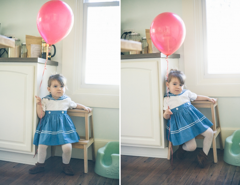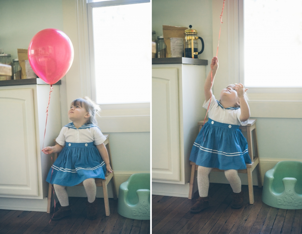 I promise I did not even stage these. Indy brought this balloon home from a church event on Saturday evening and has been playing with it ever since (she calls it a "bah-balloon"). Every time she accidentally let it float to the ceiling she would immediately start to panic as though there was no way she would ever be able to get it back (forget about the fact that we had already retrieved it for her 10 times already), so in between playing with it she would store it in a sideways crate we happen to keep in the office, so that it would stay at her level. Genius.