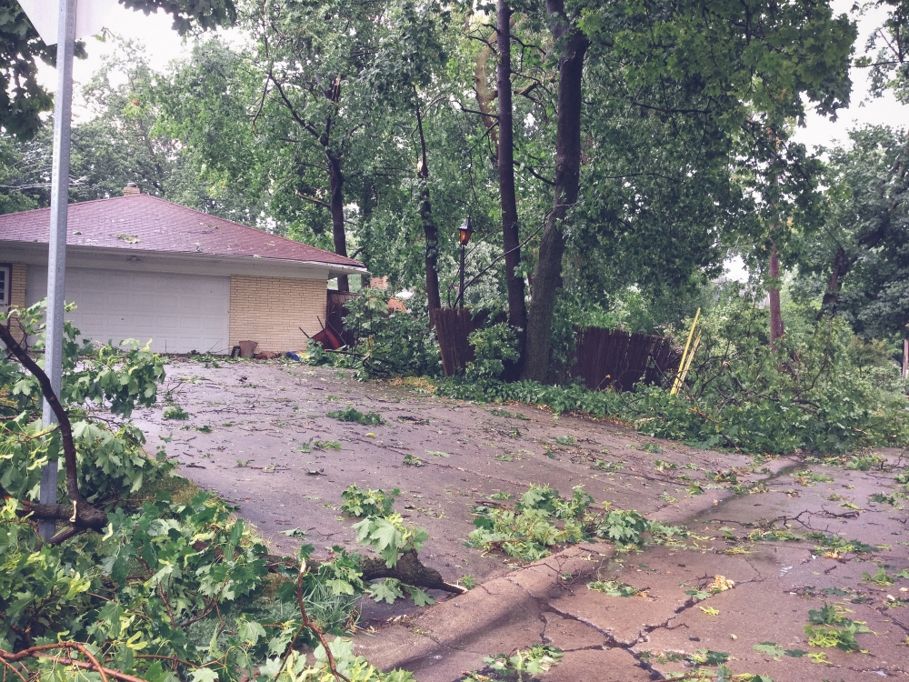 That half of a tree was in Joel and Kate's driveway. Thank goodness no cars were parked there when it fell.