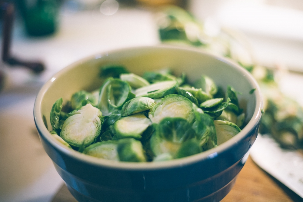 Brussel sprout season is upon us my friends, which means you can buy them by the stalk (this gets you a deceivingly large amount of brussel sprouts for a good price - Alan and I stretched a single stalk into two meals for the 2.5 of us). I really love brussel sprouts, and I think everyone should. If you hate them, you've probably never had them prepared well. My new favorite way to prepare them: