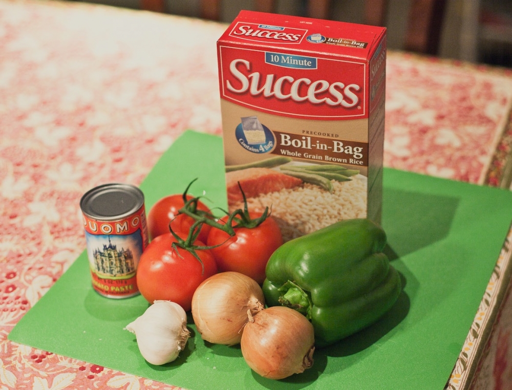 - rice (believe it or not, when we were first married I had never even cooked real rice before, so we used to buy this boil in the bag stuff called Success rice. We have since put our big boy rice pants on, but I picked up a box of Success rice to stay true to the original recipe - two bags)