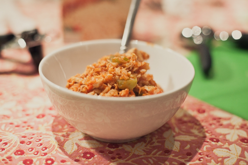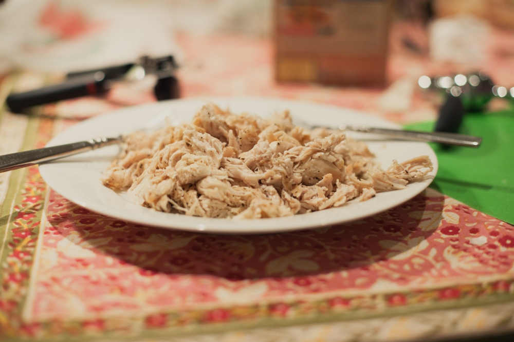 The holidays always make me really nostalgic for our early married days. We were married in October and the first fall and winter together were so special. We spent so much time cooking shoulder to shoulder in that tiny kitchen, and a staple in those days was chicken mish-mash (I don't remember how it got the silly name, but somehow it stuck). It was a recipe I first threw together for Alan while we were dating, and then we "perfected" together after we were married. I didn't really know much about cooking back in those days, so the recipe is really simple, but its an awesome comfort food. (I made it over at Joel and Kate's on friday night, so you can admire the glimpses of her beautiful tablecloth in there)