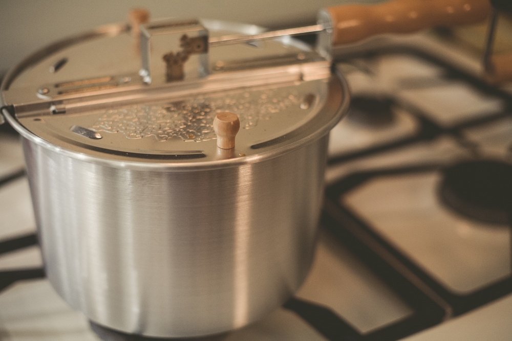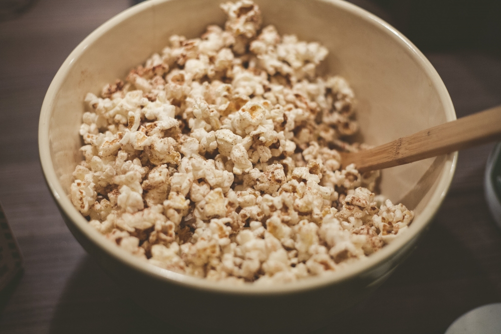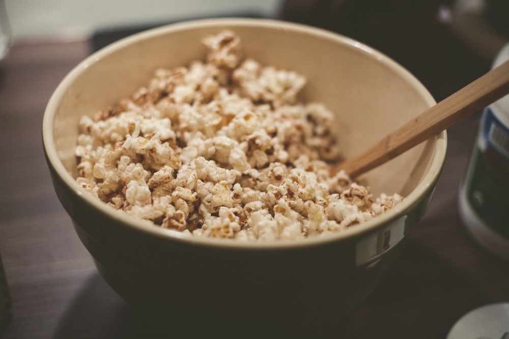 I always pop in coconut oil as it is very heat stable, and even though I wouldn't mind if it did (since I happen to love coconut oil), it really doesn't flavor the popcorn. I pop 1/2 cup in about 2 tablespoons of oil, then toss with 2-3 tablespoons of melted butter, 1 tablespoon of sugar of choice, about 1/4 teaspoon salt, and a heavy shake of ground cinnamon. This is so addictive, I always eat way too much and make myself sick. Don't do this. Just eat the right amount and feel awesome. :)
