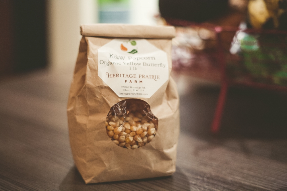 We snagged these organic popcorn kernels from a local farm in early fall at the farmers' market. I made popcorn once in our heavy cast iron dutch oven with the "no-stir" method. It burned on the bottom. Ah well. For Christmas, Alan's parents gifted us a Whirly-Pop, so popcorn making has once again commenced, with no burnage! Being all snug inside on cold winter days really makes me want to make popcorn (and hot chocolate), and we've been having plenty of cold around here.