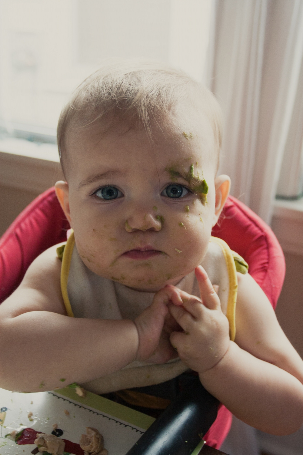 (Indy normally prefers to eat her avacado with a fork, and does so rather delicately and cleanly, but this time, for some reason, more seemed to end up on her face than in her belly.)