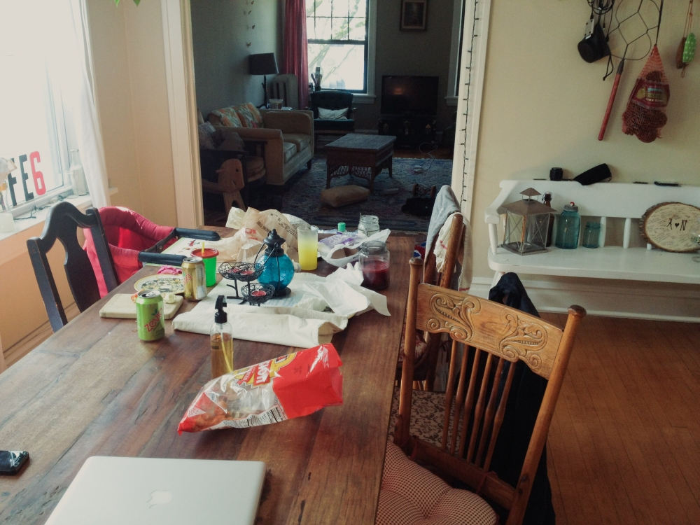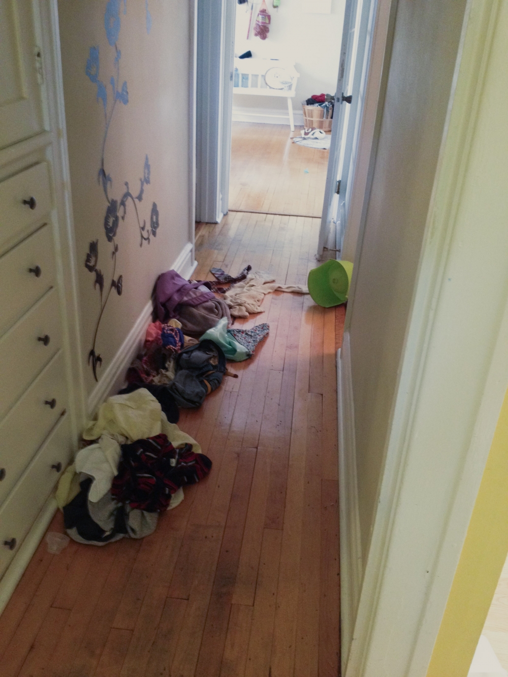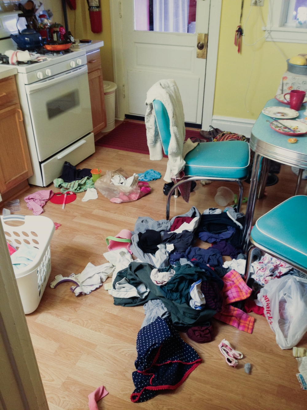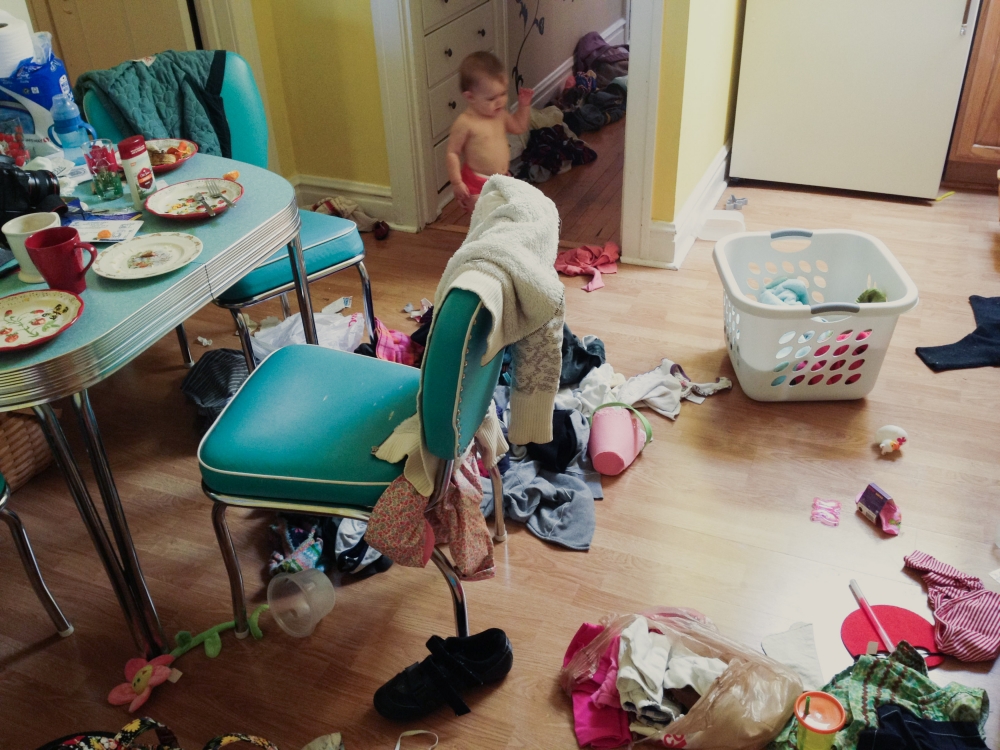 Lest anyone ever think we have it all together over here at the Miller household (or think we think that), please behold my kitchen after a busy toddler had her way with it over Easter weekend. Often we will have the house spotless by 11 p.m. on a given evening, and by the same time the next night it could look like this. How. . . does that happen? And to be fair, my house looks like the above photo much, much more often than it looks like this.