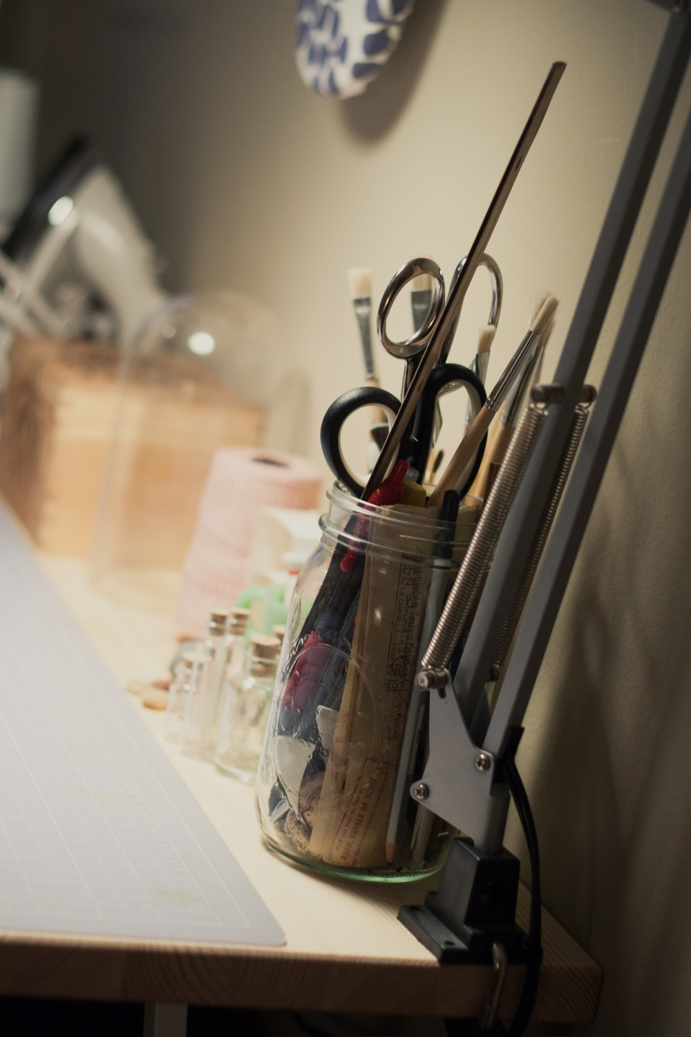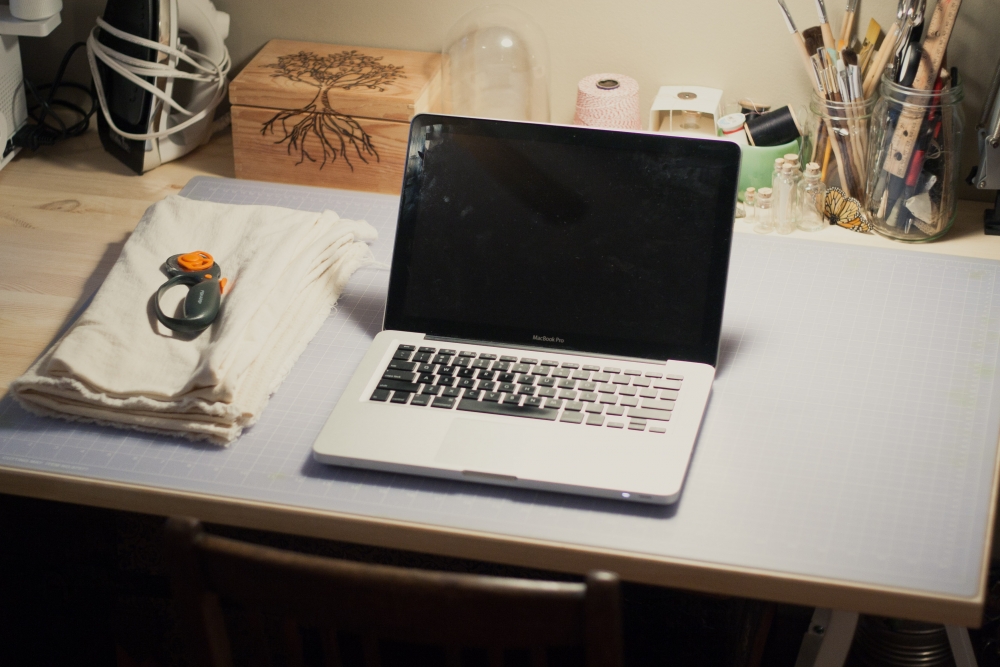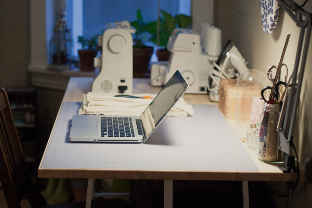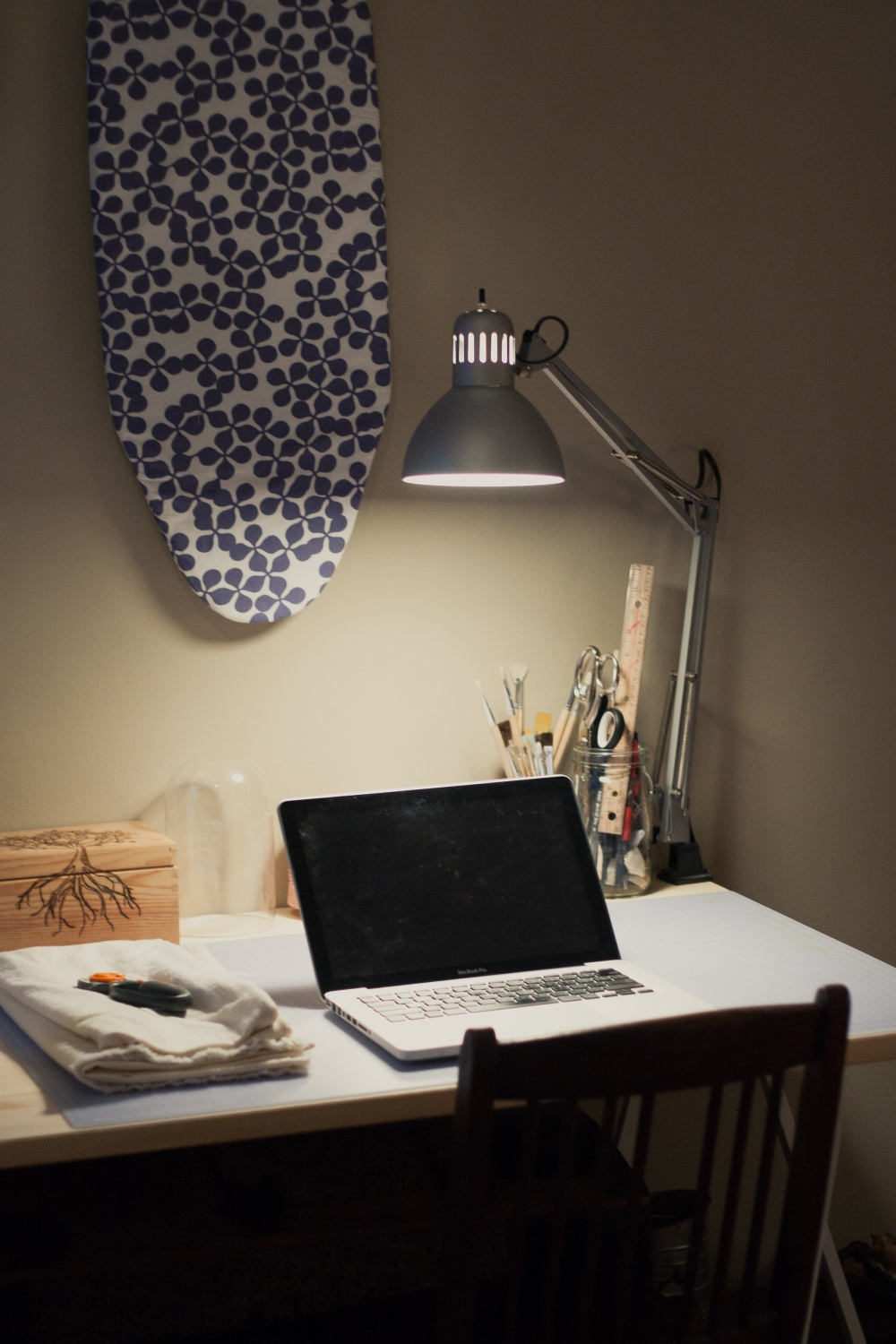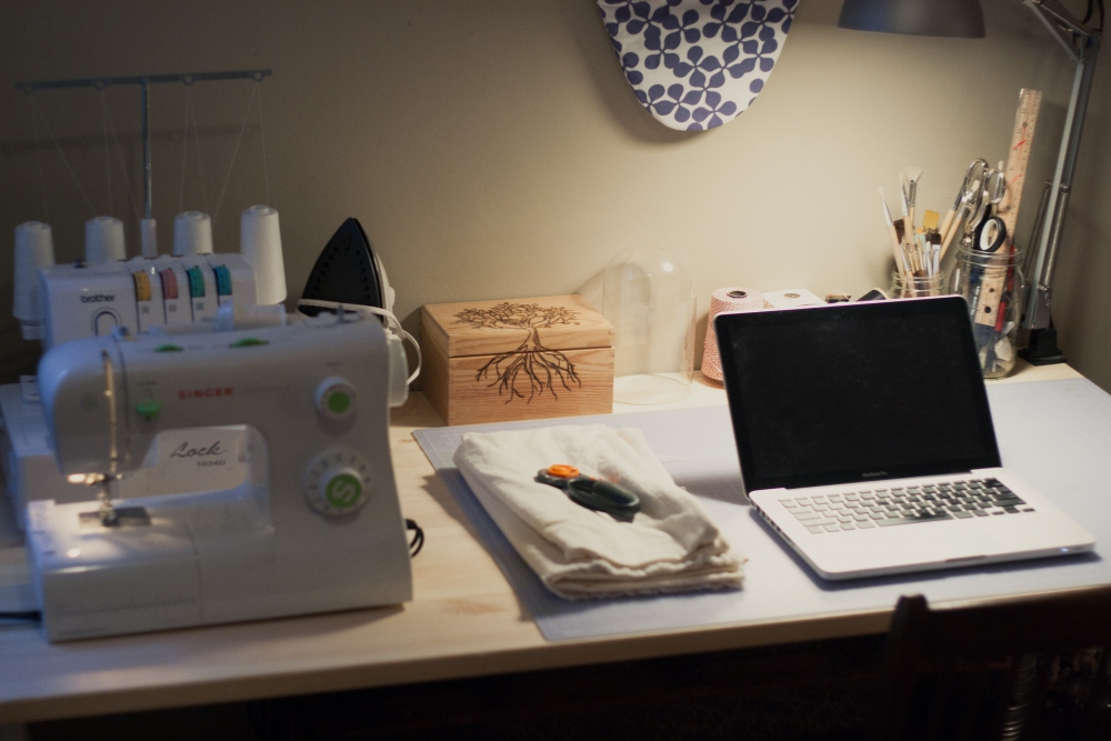 I think any creative person knows that getting yourself to just get started on a project is the hardest part, and lugging all my heavy sewing stuff in and out of closets and cabinets was definitely impeding me. It's so nice to have that all out and accessible, and to also have a place to sit and write.