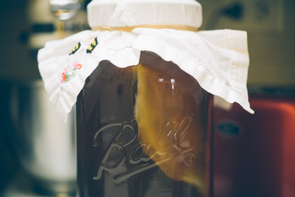 I've got my first batch of kombucha brewing on the counter right now. Our friend Kyler was kind enough to give us a scoby, and if I'm successful I'll be glad to stop paying nearly $4 for a bottle at the health food store! Indy will be glad too, since she loves "boosha." It's been on the counter for a few days and its starting to smell like kombucha so I'm hoping that's a good sign!