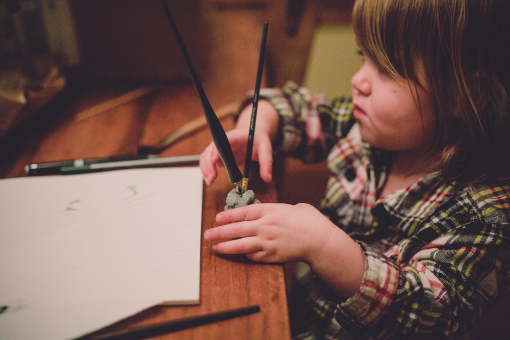 Indy's contribution during painting time consisted of shaking the table while I was working on the lettering, and sticking things in the eraser. Thanks Indy.