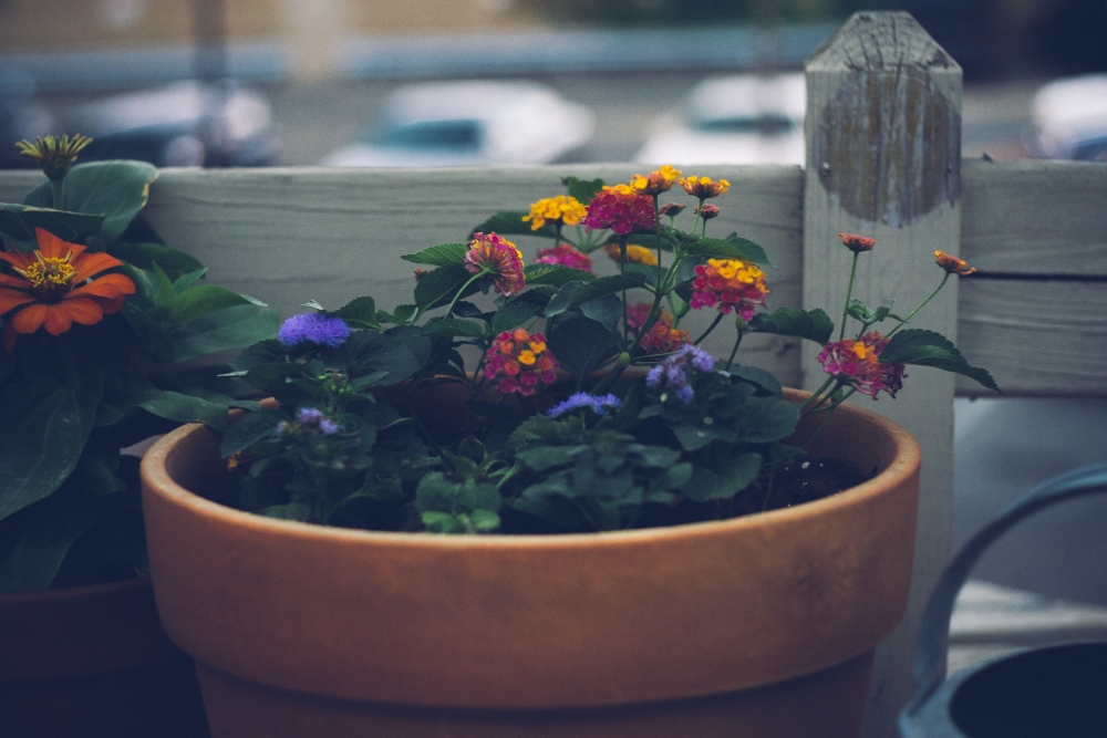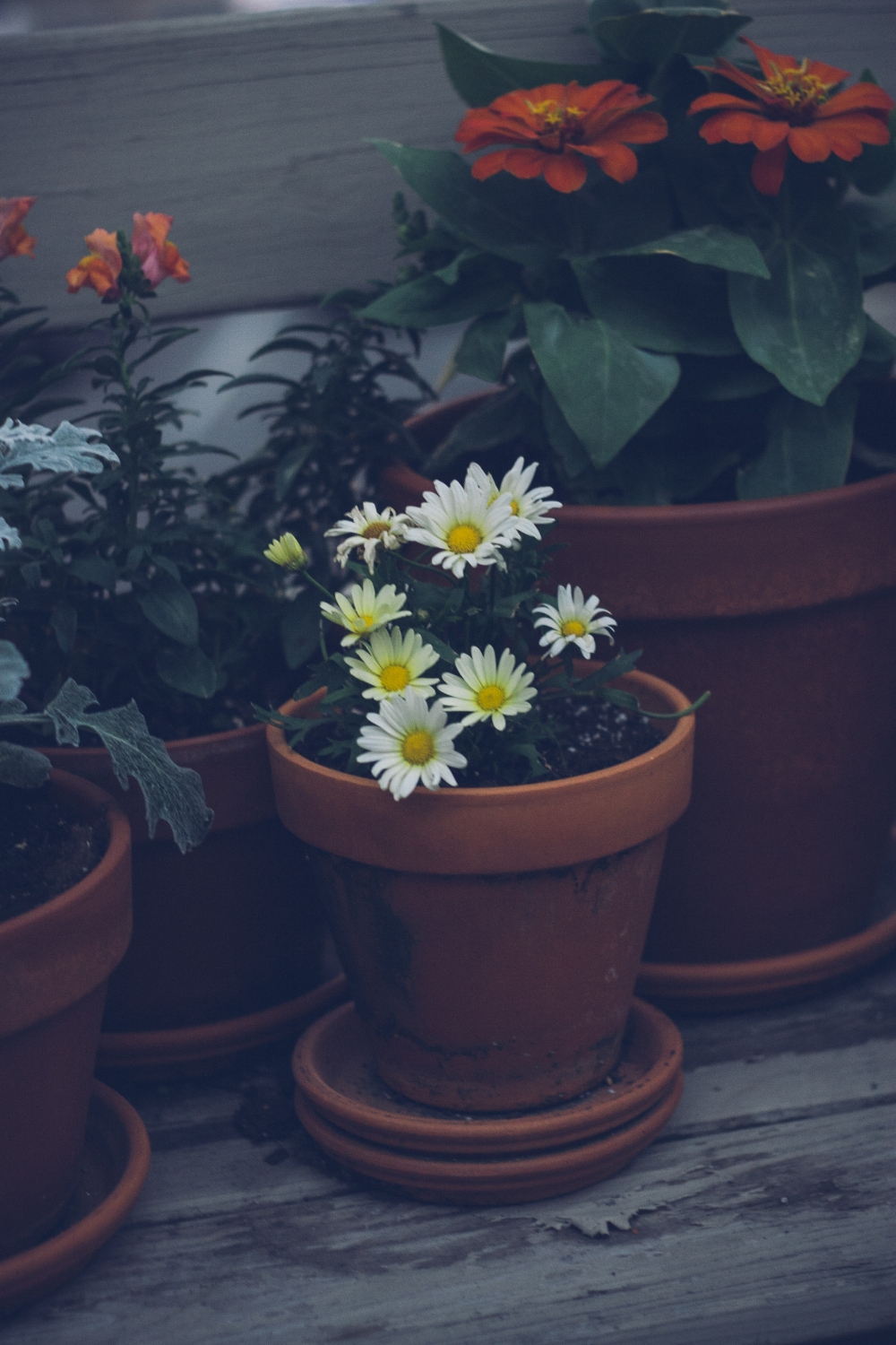 It's sort of nice to just stick to flowers on the back porch this year. They're pretty, and less picky about soil nutrients, I think. I was trying for a bit of a cottage garden type look, but sticking to annuals sort of limited my options. A lot of the really wildflower-like, whimsical looking flowers seem to be perennials, and while I suppose nothing was stopping me from planting a few perennials too, I decided to save that privilege for when we own a house someday.