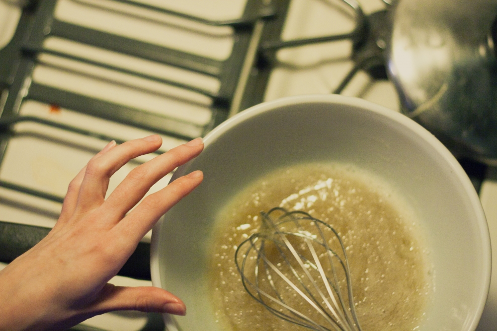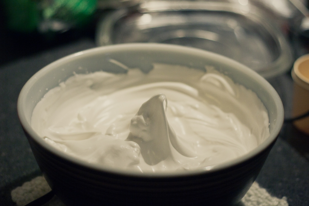 Remove from heat. Whip on medium for 3 minutes, and then on high until stiff peaks form. It will start out looking a little like this. . .