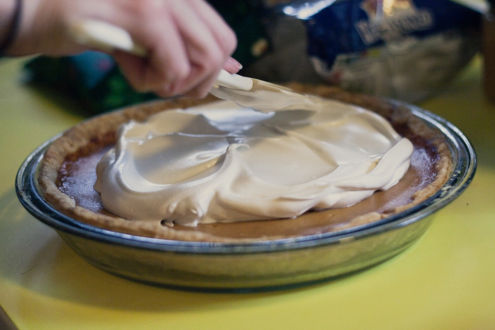 Make sure you start this pie the night before, since it needs to cool for quite a while in the fridge before adding the meringue.