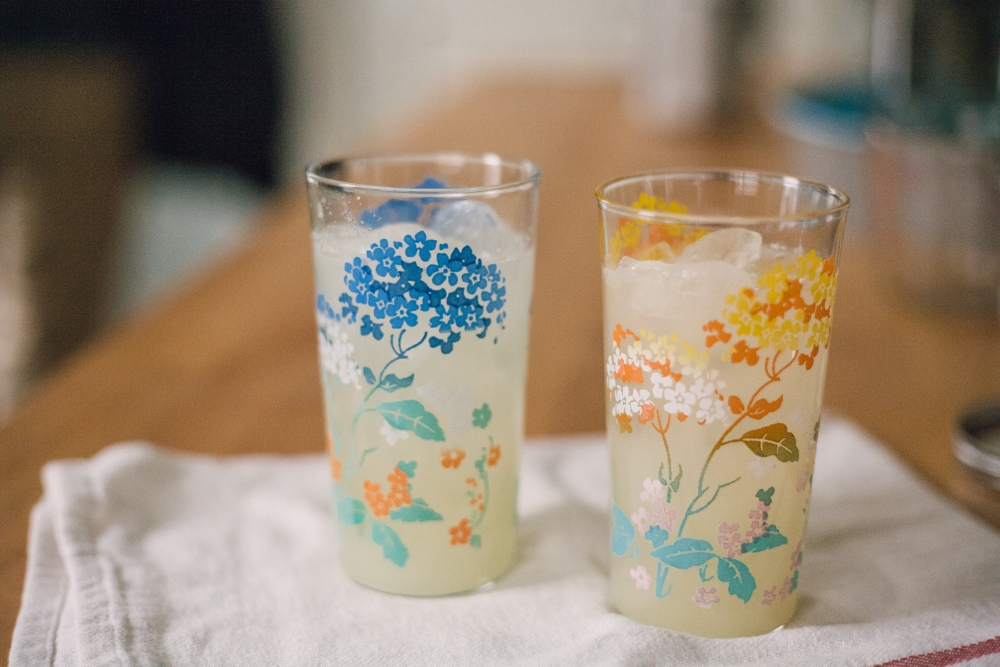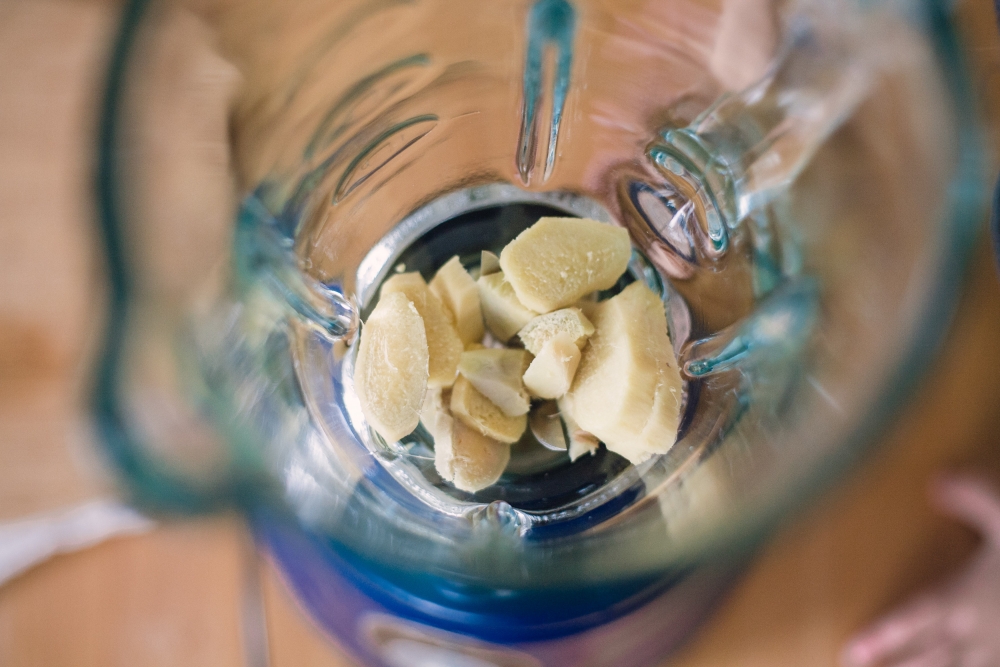 For the ginger juice, I peeled and sliced a 3-4 inch piece and blended with just enough water to cover, then poured into a jar through a fine strainer (you could also use a juicer - if juicing, use half as much ginger juice while mixing your sodas.)