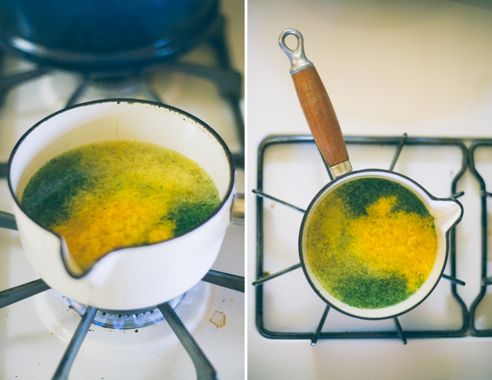 Make the simple syrup by combining the water, sugar, honey, and citrus zest in a small pot and just bring to a boil. Stir until sugar is dissolved and allow to cool.