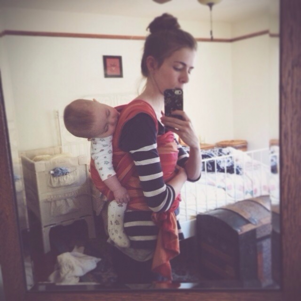 Indy's been helping me break in my new woven wrap by using it as hammock. It's pretty much my childhood dream and I would love to shrink myself down so that I could chill in that hammock under the kitchen island with her. Yes she fell out and bonked her head and cried. Yes she got back in it.