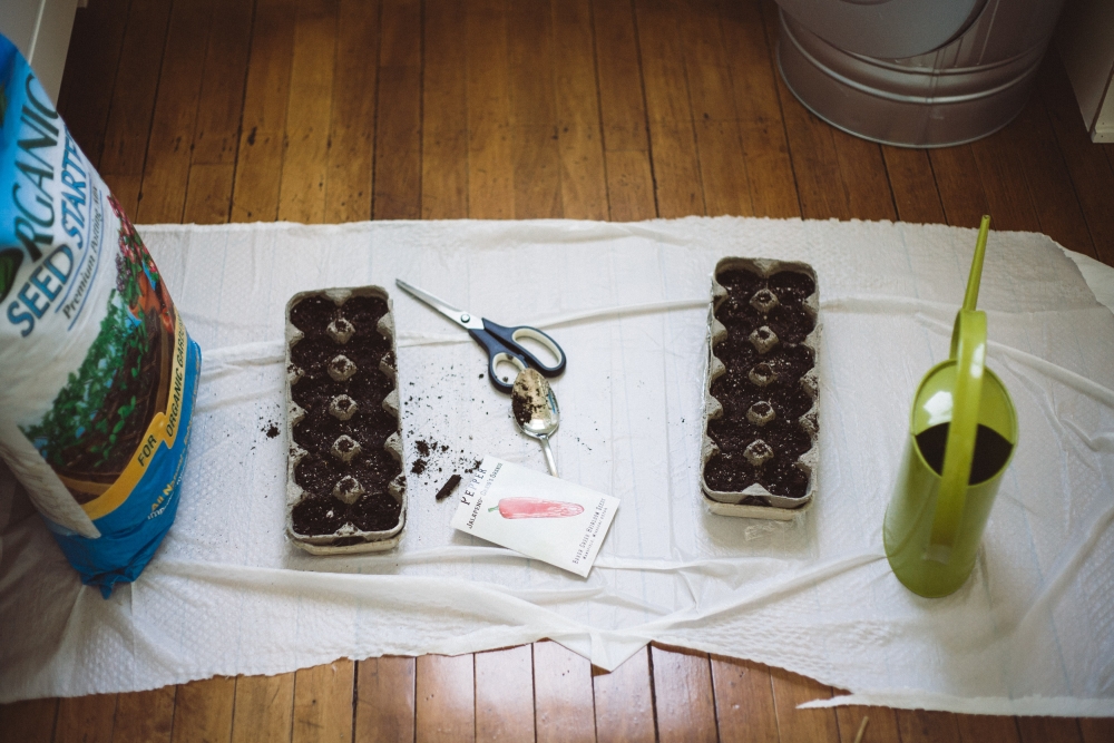 I soaked sweet peas and pixie lupine for planting. Somehow I got mixed up because the lupine really wasn't supposed to go out until after last frost. I didn't figure this out, of course, until after I had soaked the seeds, so I had to do something with them one way or the other. I ended up starting some inside (just to make sure some survived) and planting the rest out in the garden with a small prayer that they don't try to sprout before frost has really passed. We'll see. Call it an experiment.