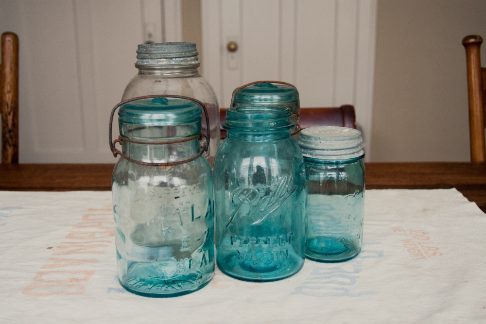 Collection of antique mason jars: these were all between 50 cents and 2 bucks! Great additions to my growing collection.