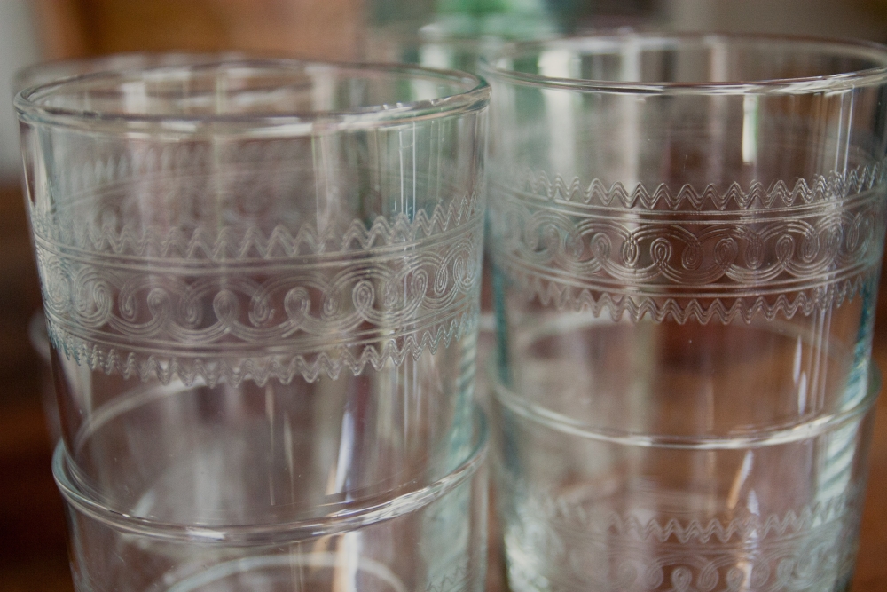 Somehow we've managed to break like half (or more) of the various vintage glasses we've collected so far, so we were in dire need of some newbies. This collection of 8 juice glasses was perfect. I love the simplicty, the subtely wavy glass, and the etching. We'll see how long these last, ha.