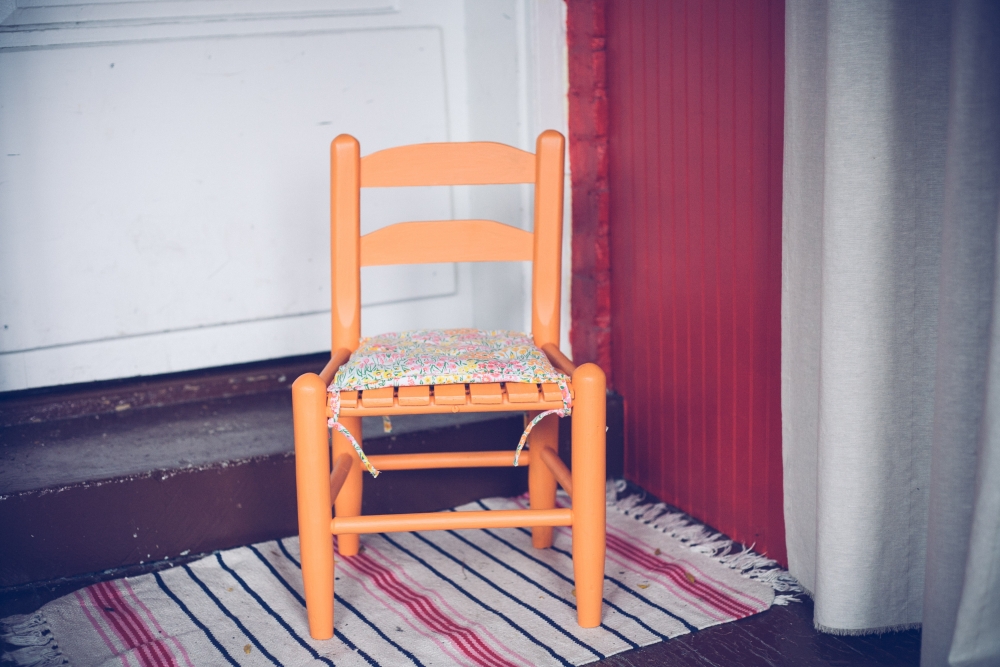 We've been on the lookout for a little chair or Indy for a while now. It's funny how children intuitively identify miniature versions of things as being for them, and in a house full of things that she's regularly being discouraged from overturning and upsetting, I think it is important that she have things all her own that she can drag around and turn upside down and climb all over.