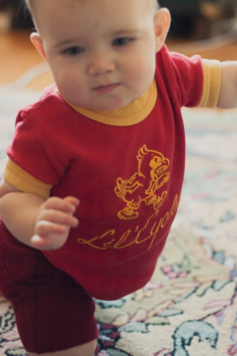 (this awesome vintage shirt which reads "lil' cyclone," which is fitting, since that's often what we mutter under our breath after Indy has her way with the living room. . .)