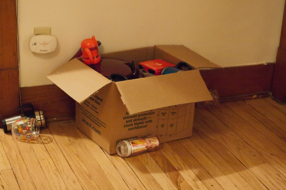 . . .and then rifling through this box of cups to donate and adding her own cup to the collection. . .how benevolent)