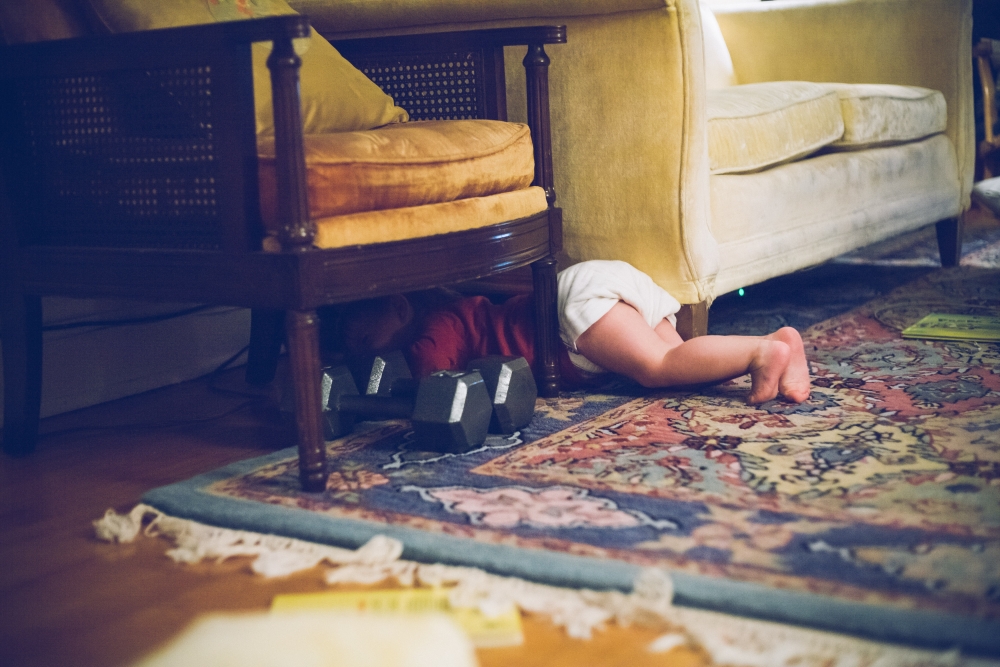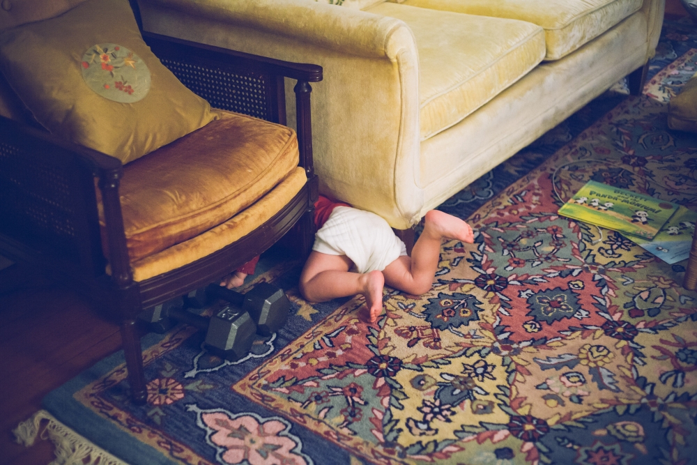 Last night we were cleaning up in the kitchen after dinner and heard a rather frantic screaming coming from the front room. I hurried back to find her trapped between the couch and chair. Apparently she had gone on a crayon reconnaissance mission that went horribly wrong. . .