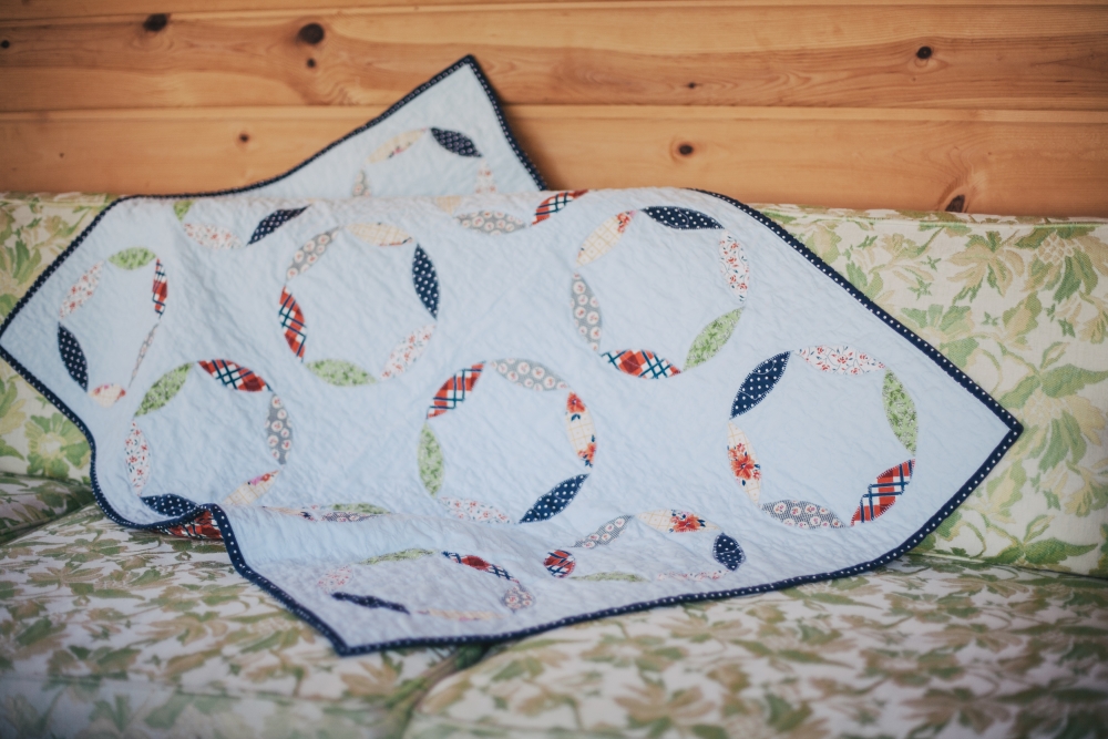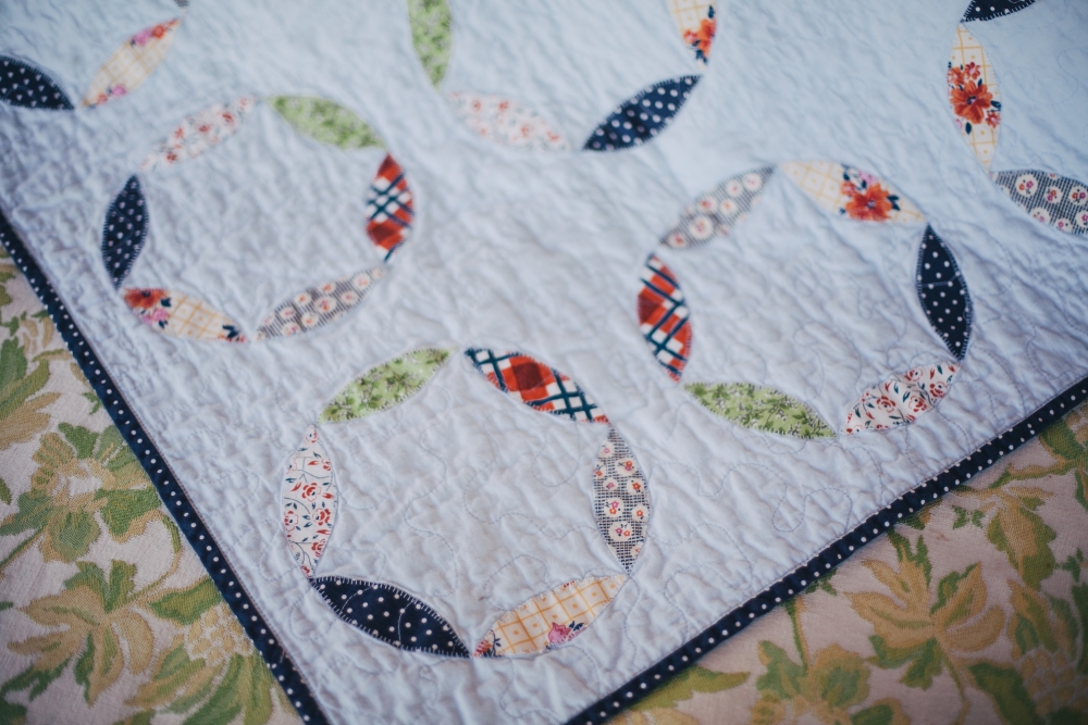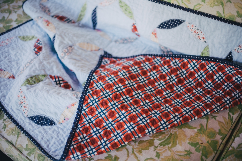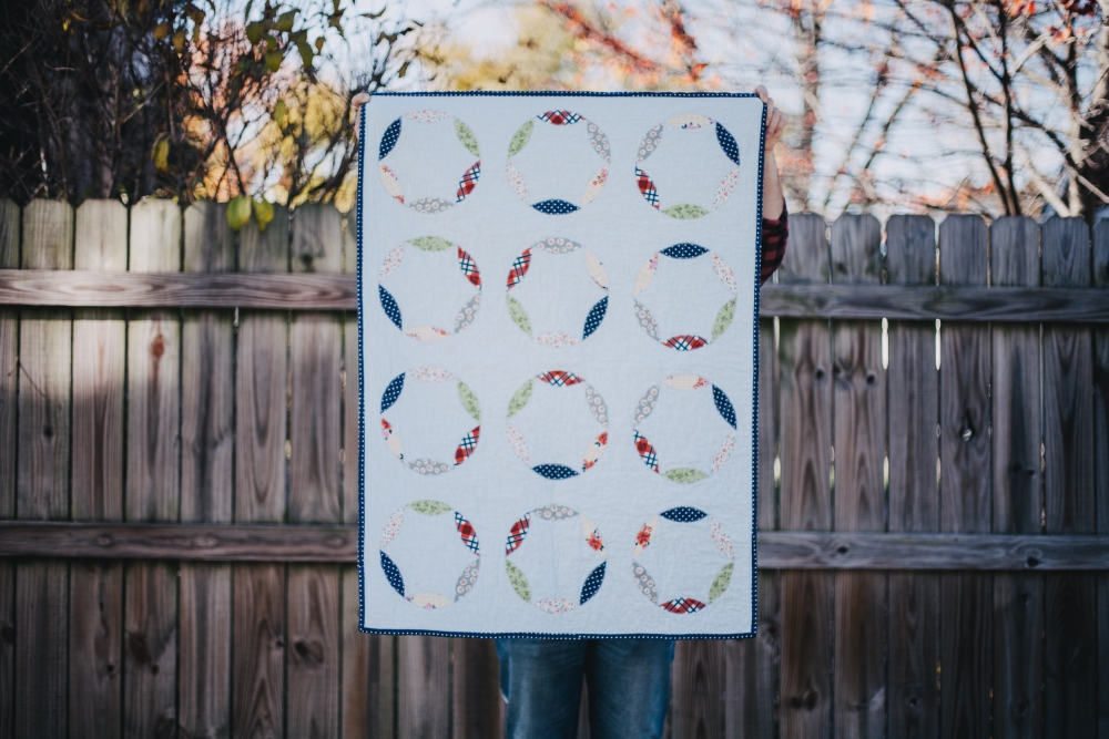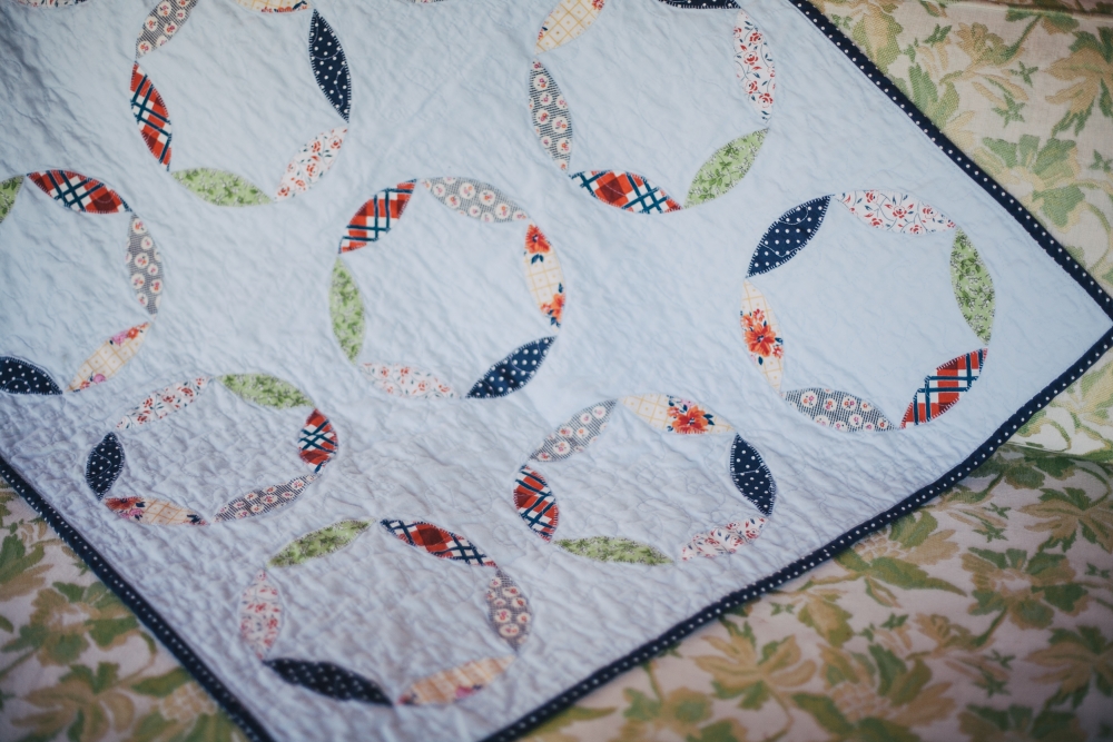 It's really not like I need another hobby to become obsessed with and to litter my house with scraps of some fiber-based material while I totally neglect to unload the dishwasher, but it may be too late. Why are baby quilts the best thing ever?! This was a gift for my husband's sister-in-law, Kate, who is due with her first baby in December. The gender is a surprise, so I tried to lean more gender-neutral (I think it turned out a little more on the "boy" side, but look! there's some flowers in there!) The pattern is the mod circle applique baby quilt, but instead of a charm pack I picked 6 different quilting fabrics I liked. Unlike my last quilt, this one was applique instead of patchwork, which I found to be a slightly quicker process but still with a very rewarding result. I also made my own bias tape this time (I'll never go back to pre-made again!) and I used a single layer of plain flannel instead of cotton batting in the middle, to make the blanket softer and more flexible. Can't wait to meet another little niece/nephew!