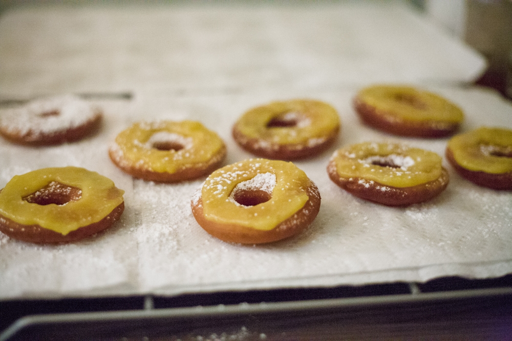 I made homemade donuts the other Sunday - based on this recipe but fried in coconut oil, and with fresh lemon curd. There were like 2 dozen, and they were gone in about 15 minutes flat. Don't worry, we had help.